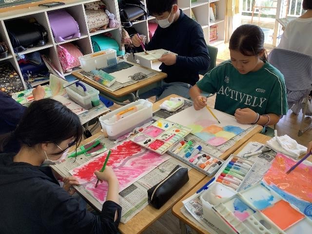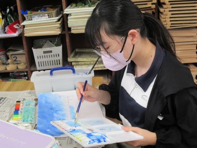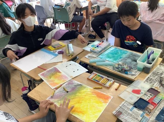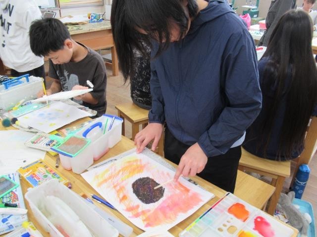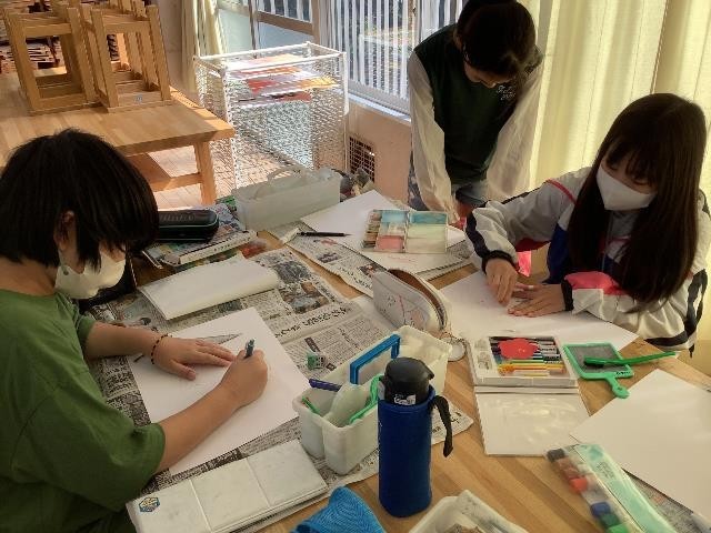 今週の6年生の様子です。図画工作科で「わたしの二つの気持ち」をしました。