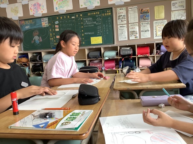 算数「円と球」の学習では、円の形をした紙を実際に折って中心を見つけました。