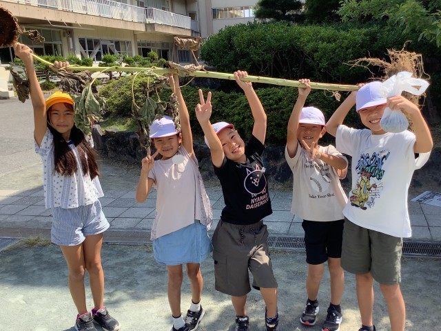 理科の学習では、ヒマワリの種をとったり、太陽の観察をしたりしました。