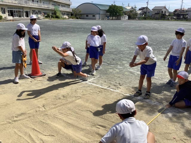 体育の学習では、幅跳びをしたり、スポーツフェスティバルに向けて話し合ったりしました。