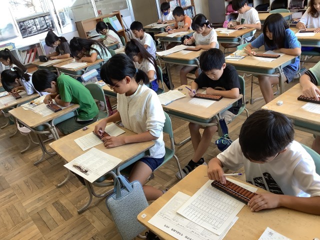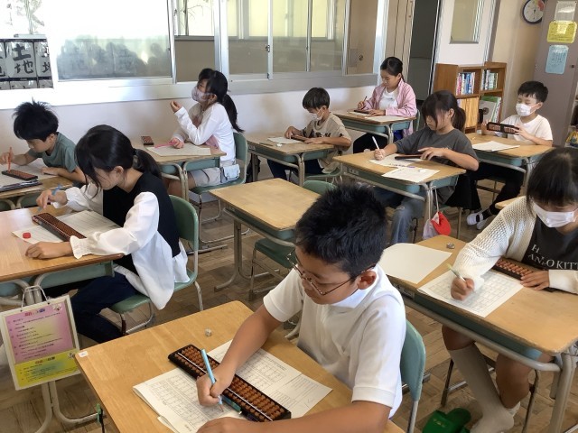 近隣のそろばん教室の先生を講師にお招きし、そろばんの使い方を簡単に教えていただきました。
