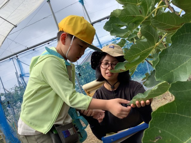 実際に実がなっているところを見たり、実や葉を触ったりして、「かたい」「ちくちくしてる」などと気付きを口にしていました。