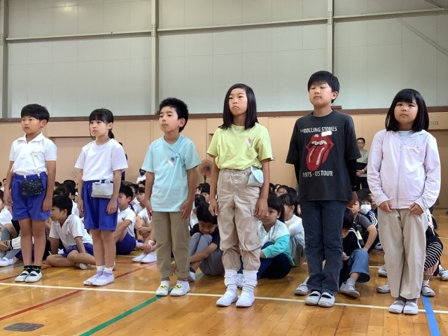 全校朝会で、後期学級委員の任命がありました。よろしくお願いします。