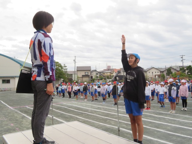 競技は実際には行いませんでしたが、進行や係の準備などの流れを確認しました。入場や係の仕事を行うタイミングがばっちり分かったようです。