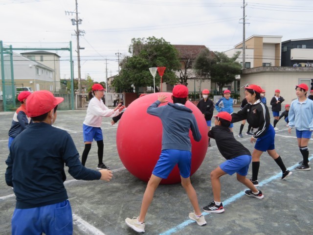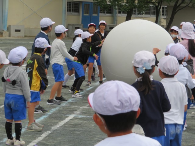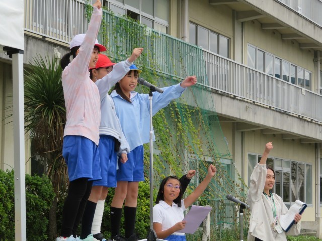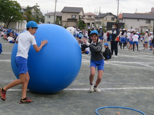 最後の大玉送りでは、合言葉の「できる!」を声に出し、「仲間に『できる!』」、「自分に『できる!』」、「仲間と一緒に『できる!』」と全校一緒に声を合わせ、心を一つにして、競技を行いました。赤、白、青、どのチームも応援しながら頑張りました。