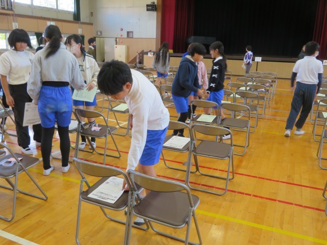 てきぱきと短い時間でいすをそろえたり、配付物を配ったりしました。ありがとうございました。