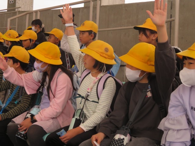 初めにイルカショーを見ました。クイズを楽しんだり、ジャンプする姿に感動したりする姿が見られました。