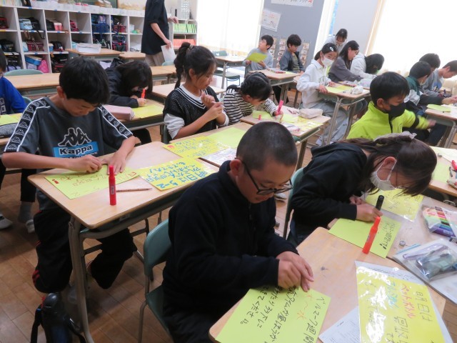 健康委員会ではアルボース石鹸の容器の掃除やトイレットペーパーの補充を、園芸委員会では先日いただいたイペーの木の話を、図書委員会では今後始める企画の準備を、福祉委員会では学級に回収日を伝えるチラシの作成などの活動をしていました。
