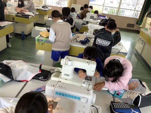 理科では、物の溶け方について学習しています。水に塩やミョウバンがどれだけ溶けるかを実験をして確かめました。みんなで交代しながらビーカーを混ぜるなど、協力して実験ができました。体育では、鉄棒と縄跳びをしています。どちらも去年まではできなかった技に挑戦するなど、前向きに授業に取り組んでいます。家庭科では、エプロンづくりに取り組んでいます。丁寧に仮縫いをした後に、細心の注意を払ってミシンで真っすぐ縫っています。