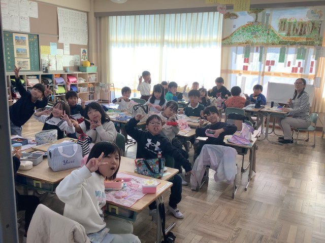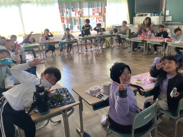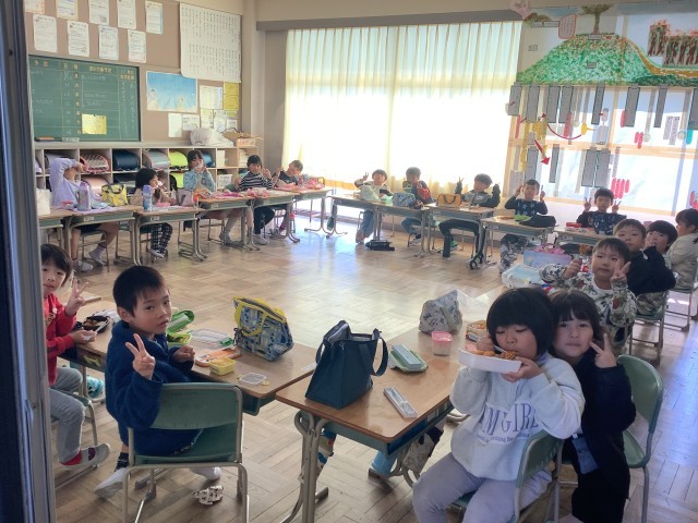 校外学習の予備日のため、お弁当の日でした。子どもたちは待ち遠しいようで、朝からずっと「早くお弁当食べたいな。」と言っていました。給食のように準備や片づけがいらないので、いつもよりもゆっくり会話を楽しみながら食べることができました。