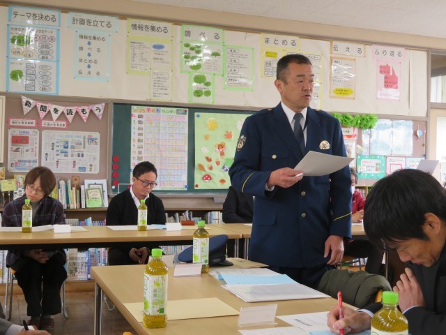 PTAの会に続いて開かれた作野小学校区青少年健全育成会では、地域の学校や園、子ども会、町内会での様子などを聞かせていただくとともに情報交換を行いました。また、安城警察署の方から県内や市内の交通事故や事件についての情報をいただき、交通安全などの意識を高めることができました。