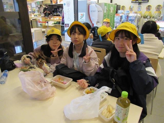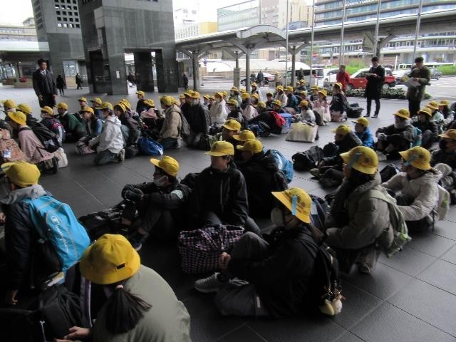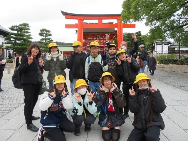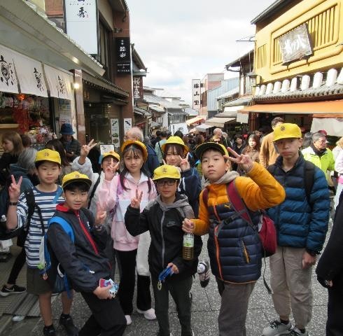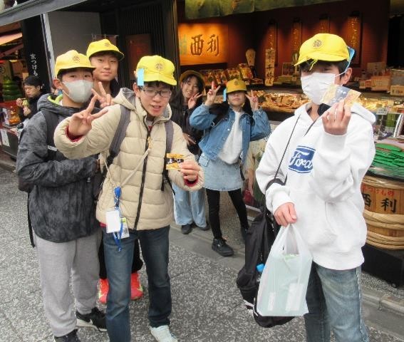 修学旅行1日目の様子です。京都の班別行動では、班のみんなと時間に間に合うように協力して行動しました。