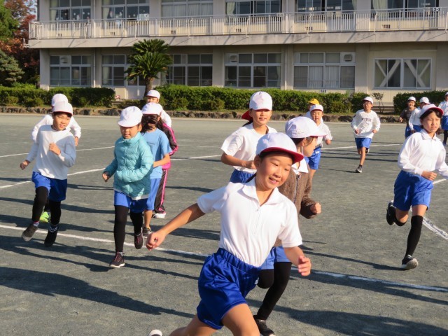 朝のかけ足は、日によってAグループ(2・4・6年生)とBグループ(1・3・5年生)に分かれて、走っています。