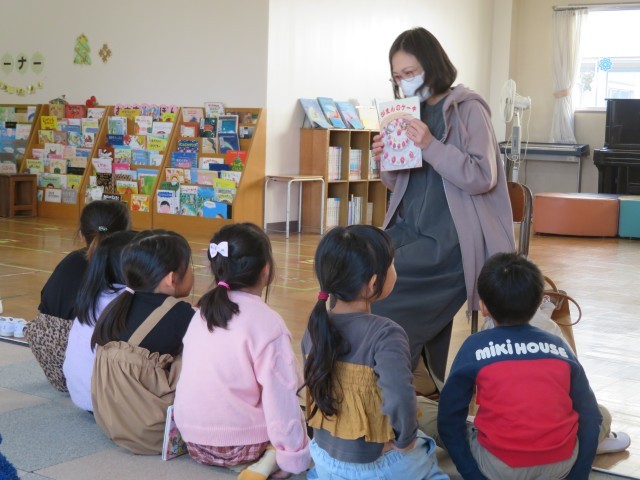 読み聞かせが大好きな子どもたちが集まって、お話に聞き入っていました。