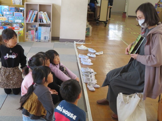 読み聞かせボランティアさんが、げんきタイムに低学年の子が利用する本の国で読み聞かせをしてくださいました。