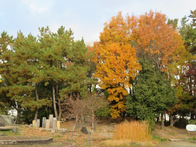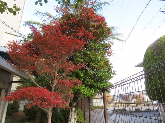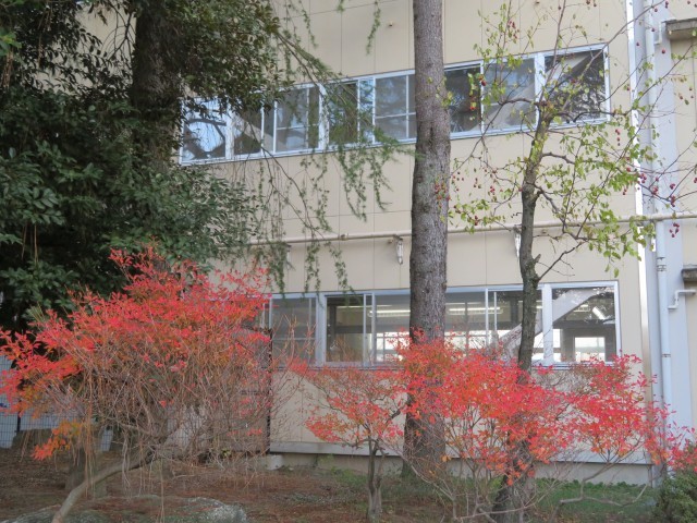 寒さとともに、学校の木々もきれいに色づき始めました。