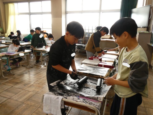 図工では紙版画に挑戦しています。年始の書き初め会にむけて、書き初めの練習も始まっています。音楽では、自分で組み合わせたリズムの発表会を行いました。