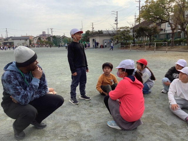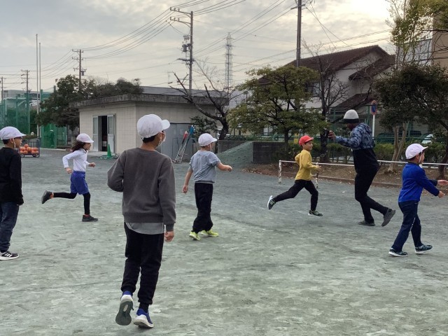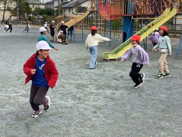 運動場でのなかよしタイムがありました。1組は氷鬼、2組と3組はけいどろをしました。みんな元気に走り回って、とても楽しそうでした。