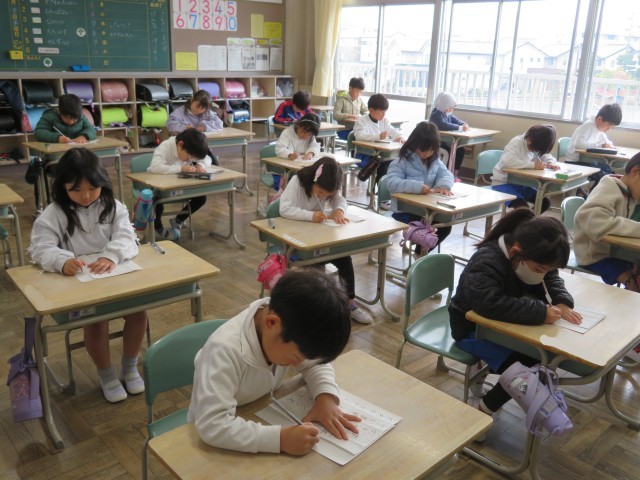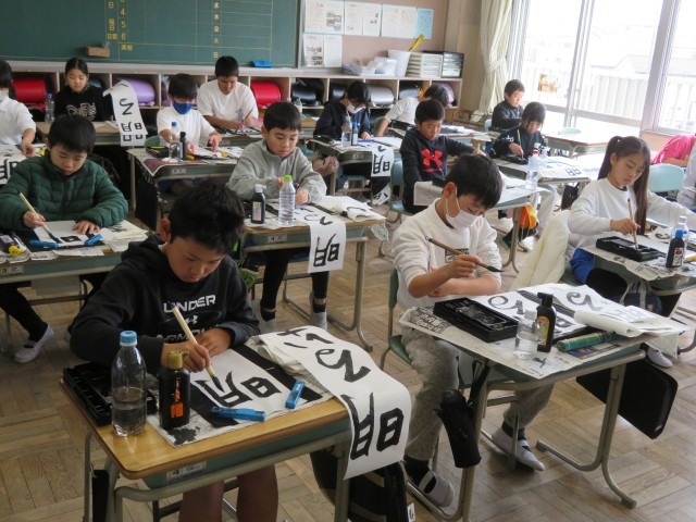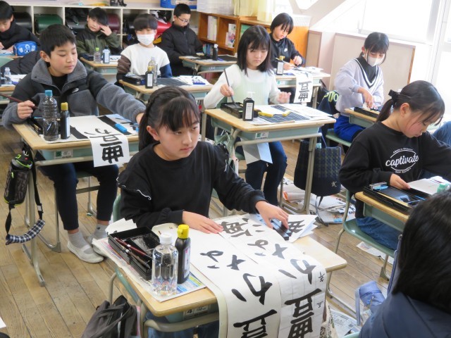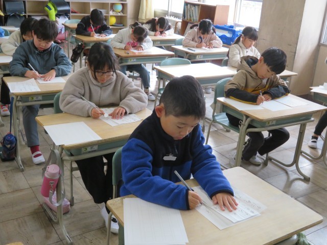 子どもたちは真剣な表情で手本をしっかり見ながら書き上げていました。