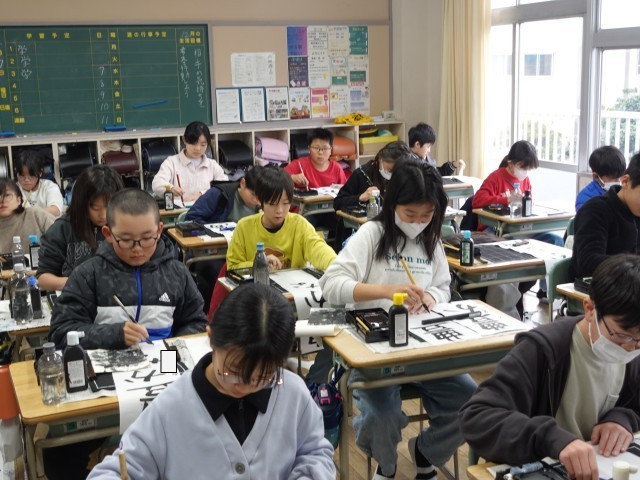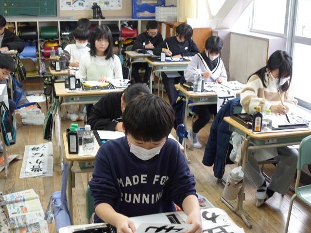 木曜日に書き初め会がありました。長い時間でしたが、とても集中して取り組むことができました。2学期や冬休みの練習の成果を出せたと思います。