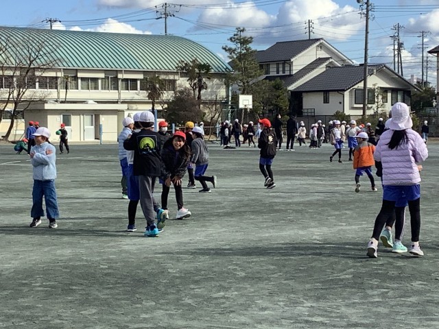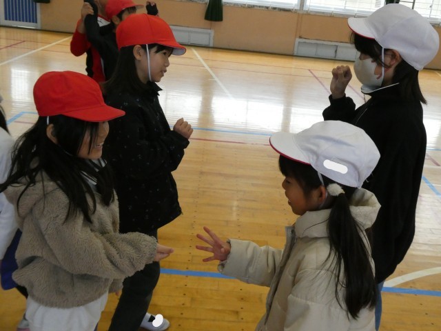 2年生企画のなかよし広場がありました。クラスでたくさん話し合い、1組こおりおに、2組もんばんじゃんけんをたのしみました。