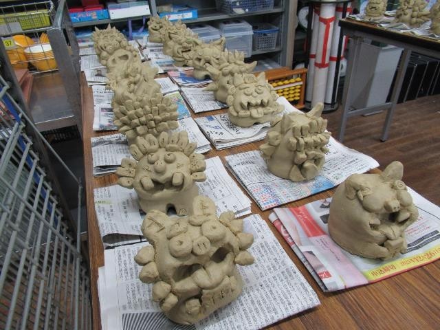 長方形のねん土のから、体を作り、口、鼻、目、たてがみなど、パーツを付けていきました。