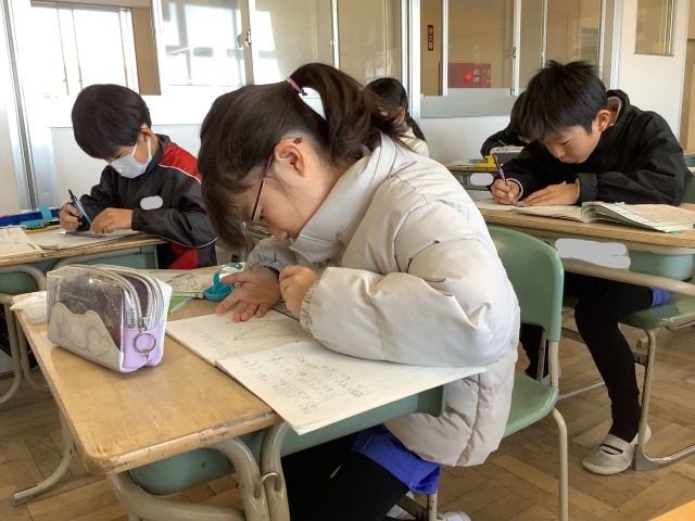 総合的な学習の時間には、授業参観での発表に向けてまとめを進めています。