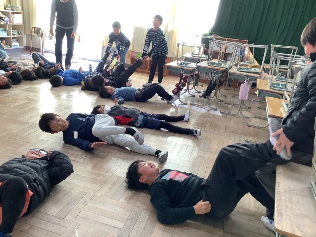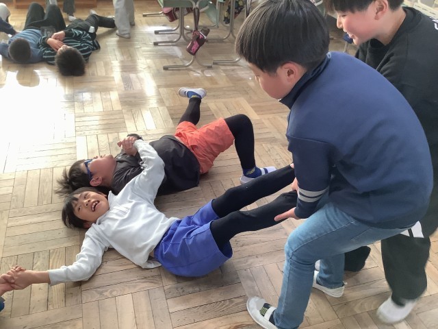 1組は「大根ぬき」、2組は「震源地」、3組は「ハンカチ落とし」と「じゃんけん列車」をしてみんなで盛り上がりました。