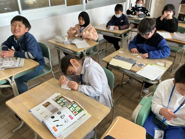 3年生の外国語活動では、Unit8 ”What's this?" を学習しています。今日はクイズの出し方や答え方を練習した後、クイズ大会を行いました。多くの人たちが意欲的にクイズの出題者となり、大いに盛り上がりました。