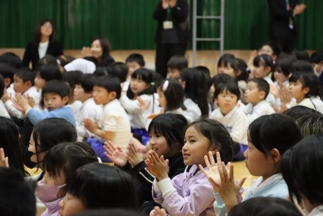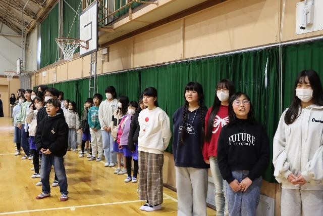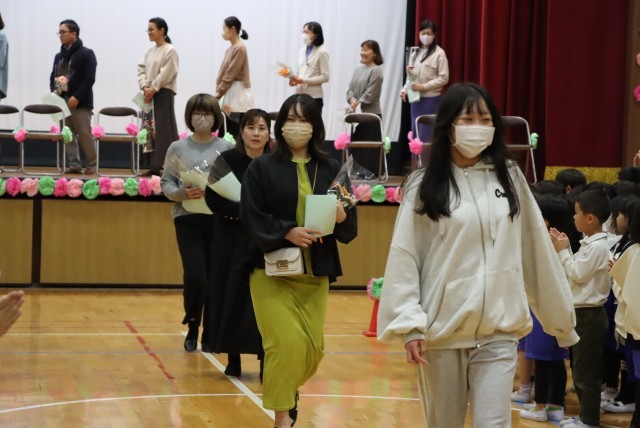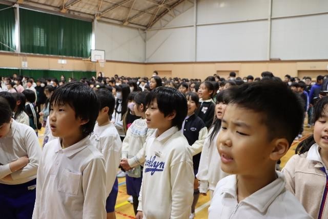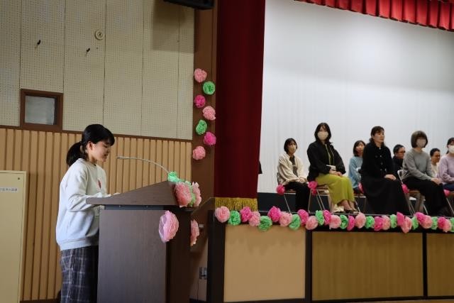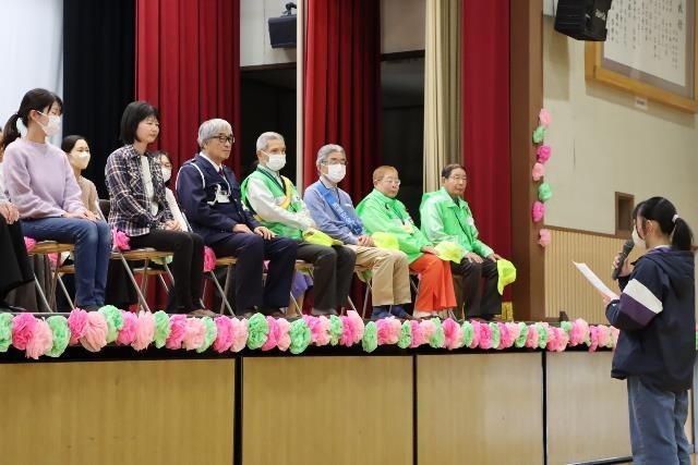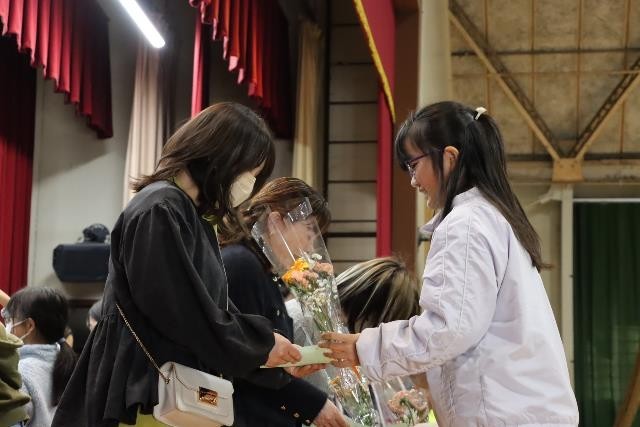5、6年生の代表委員が、ご出席いただいた皆様の案内や紹介、会全体の進行を行いました。そして、各学年の代表児童が手紙を読んだり、花束を渡したりしました。最後に、全校のみんなで心を込めて「おくりもの」の歌を歌い、お礼の気持ちを伝えました。