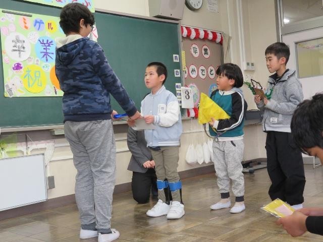 学級全員で「Believe」の全員合奏や歌、手話を披露しました。また、1年間のあゆみを一人一人が担当し、行事や学習について発表しました。卒業生は6年間のあゆみを発表して、小学校生活を振り返りました。今日までたくさん練習して、その成果を発揮できたと思います。