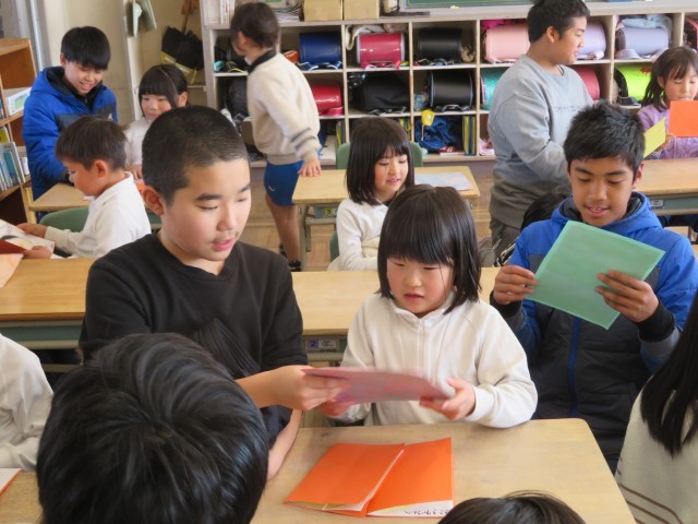 最後のなかよし広場では、1年生のペアとお互いに手紙のプレゼントをしました。自然に優しく接する姿に一年間の成長を感じました。