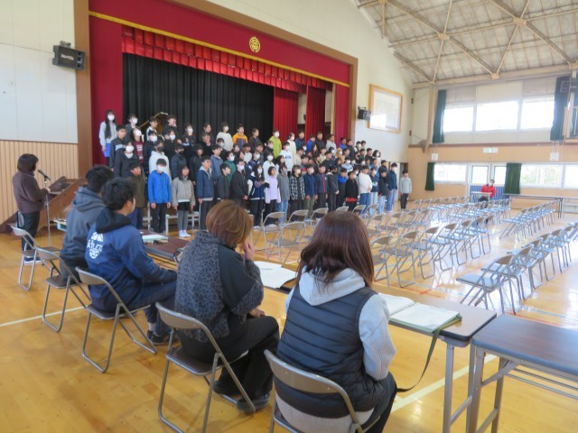 6年生と4・5年生と初めて合同で卒業式の練習を行いました。