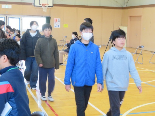 6年生の入場から退場までの流れを確認しました。6年生の動きに合わせた4・5年生の拍手や呼びかけのタイミングの練習をすることができました。