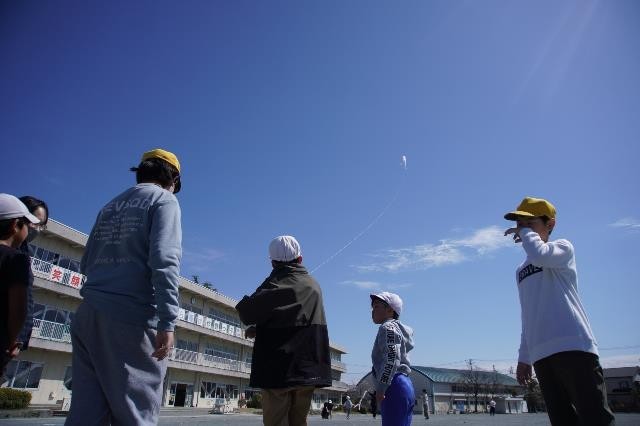 生活の授業で凧あげをしました。風があまり吹いていませんでしたが、校舎の屋上あたりまで凧を飛ばしていました。上手な子に教えてもらいながら、みんな楽しく凧あげをしました。