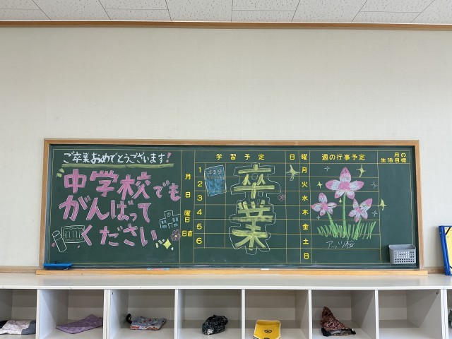 会場となる体育館の掃除やいすの準備、卒業生を最後に迎える教室もきれいに掃除され、すてきなお祝いメッセージで飾られました。
