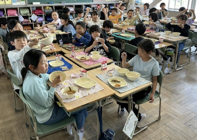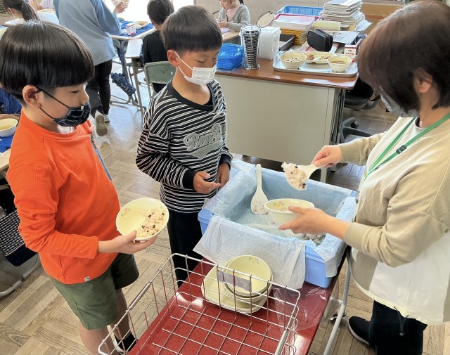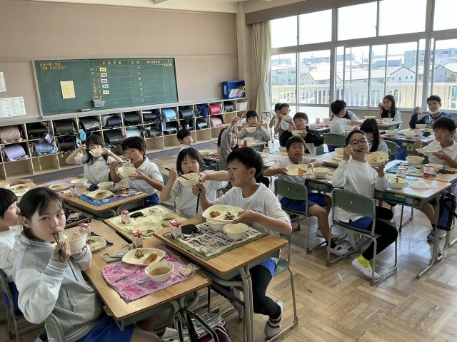 1日目は、キムタクご飯、2日目は、ビビンバ、3日目は、イカフライのレモン煮とこめことうにゅうプリンタルトでした。どれも、みんなの大好きなメニューだったので、おかわりもたくさんしました。これからの給食も楽しみです。