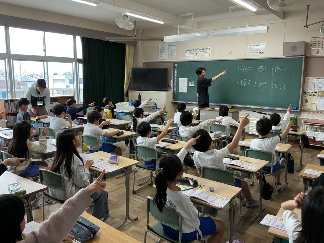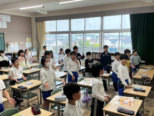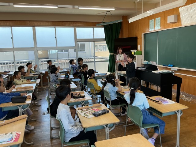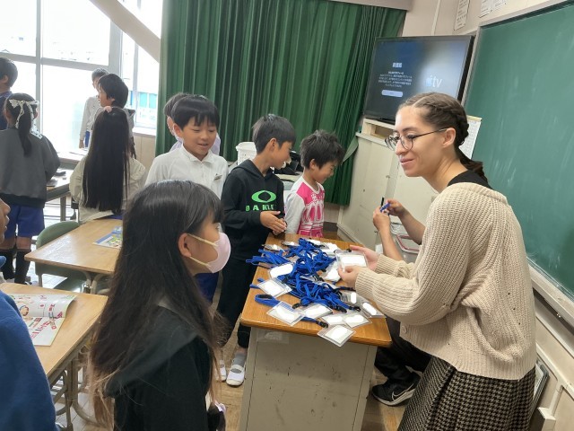 通常の日課になり、外国語や音楽の授業も始まりました。外国語の授業では、自分の名前を英語で伝えて、首から下げる名札を受け取りました。