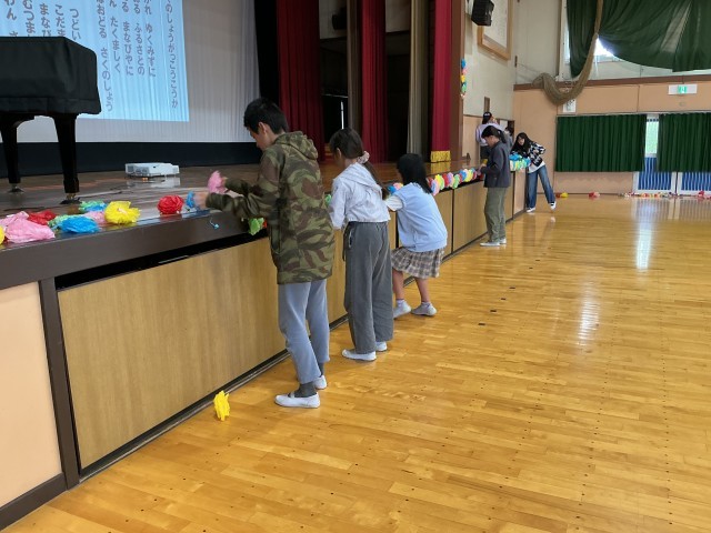 代表委員のみんなが、企画や準備、当日の進行を担当しました。どうしたら1年生が喜んでくれるかな、どうしたら全校で楽しむことができるかなと、一生懸命に考えてすてきな会を開いてくれました。笑顔いっぱいの、心温まる会になりました。代表委員のみなさん、ありがとうございました。