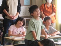図工では、一年間を振り返りながら、作品バッグに思い出の絵を描きました。