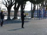 昼放課に大規模地震が起こったことを想定し、災害安全訓練をしました。先生がそばにいなくても、自分たちの判断で避難して集合することができました。校長先生から、「日頃の備えをしっかりしましょう。」と、お話がありました。