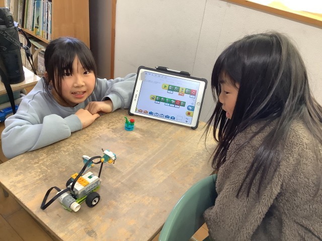 レゴブロックで作った作品をプログラミングで動かす操作にチャレンジしました。みんな思い思いのブロックを作って、プログラムを工夫して、楽しい動きを試していました。