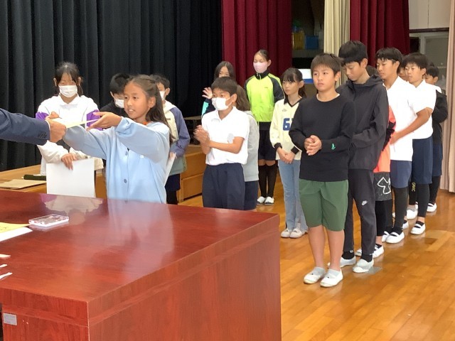 各種作品展やスポーツの大会で入賞したみなさんの表彰がありました。