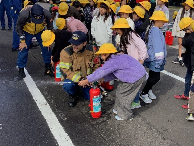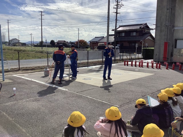 社会の学習で、消防署へ見学に行きました。消防車や消防署の中を見たり、消火器や防火衣を体験したりしました。教科書には載っていないことも教えてもらい、充実した見学になりました。