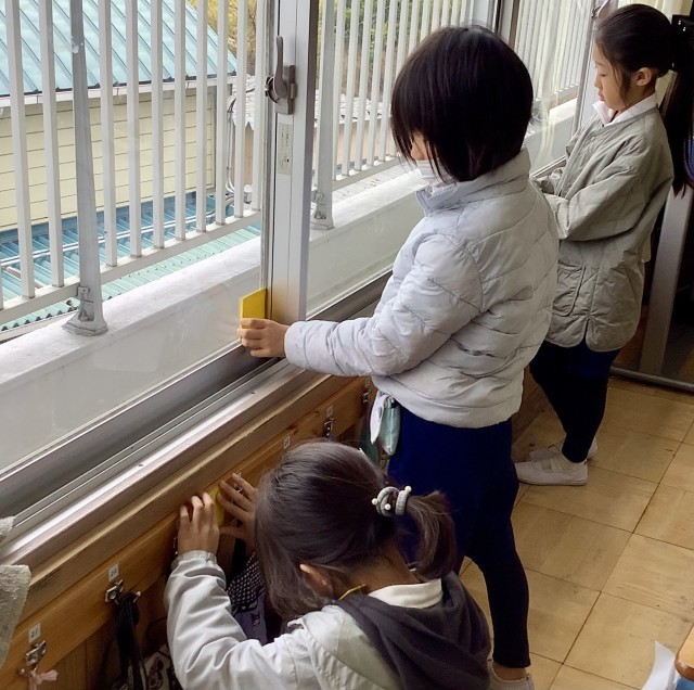 その後、教室で、どこに直角があるか探しました。たくさんの直角を見つけることができました。