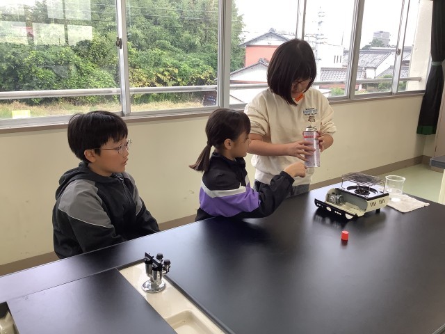 ガスコンロの使い方を学びました。全員チャレンジしました。上手に点火できない人もたくさんいて、練習が必要なようです。