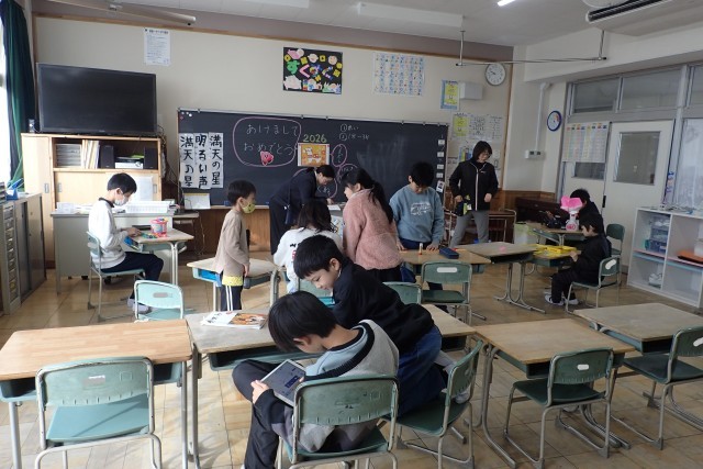 6年生は、あと49日となりました。充実した3学期にしようと、準備の話し合い活動をしました。5年生は、あと51日です。最高学年として丈山っ子のお手本になるために、頑張りたいです。いずみ学級では、冬休みの思い出発表をしてから、みんなで楽しい時間を過ごしました。今年も仲良くできそうです。