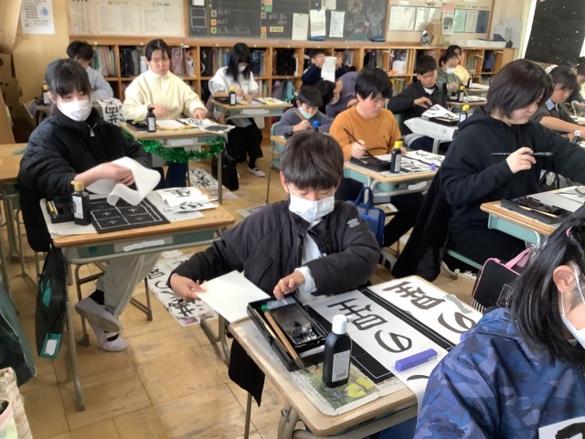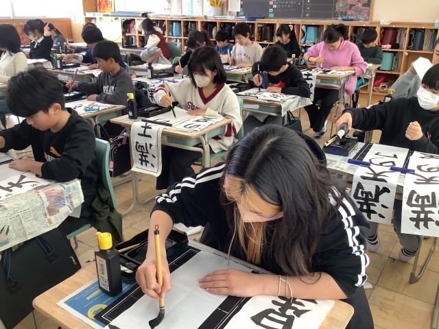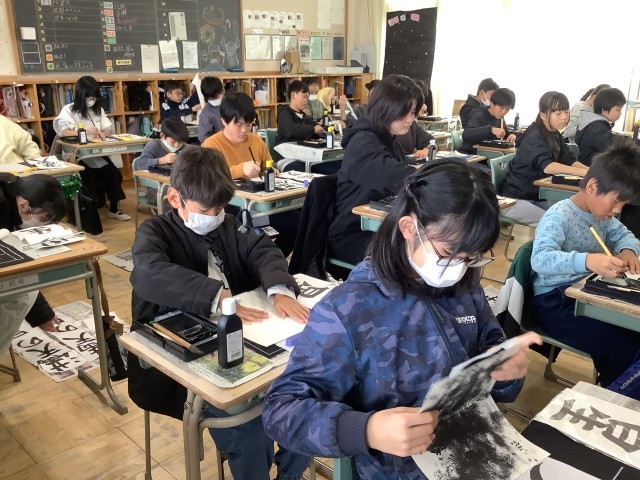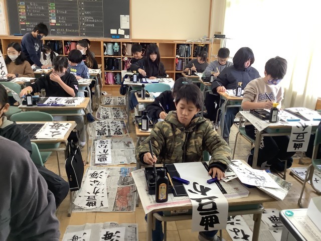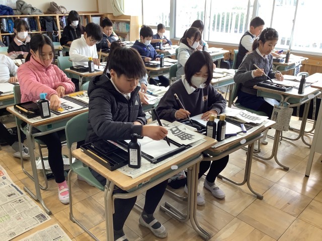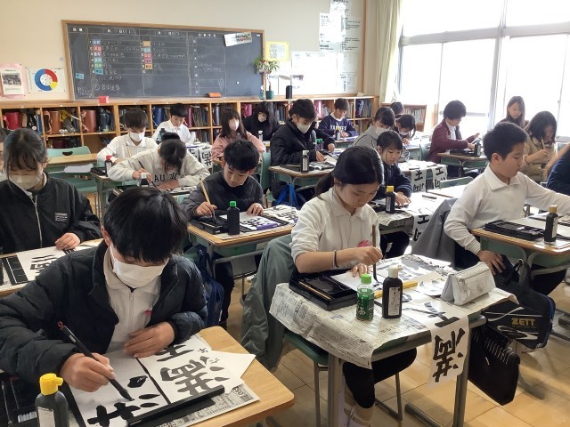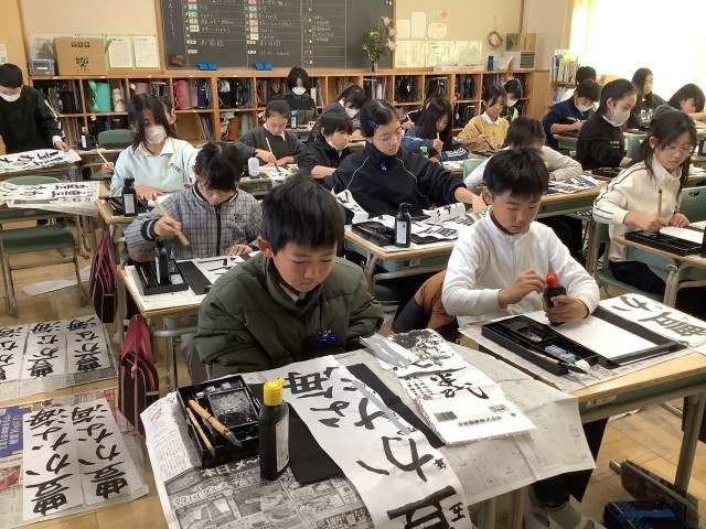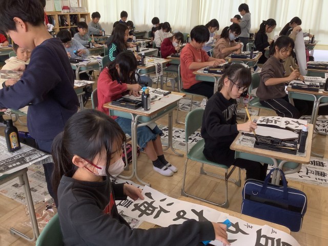 高学年のみなさんは、真剣です。仕上がった自分の字を見て、もう一度、確認する人もいます。満足のいく作品に仕上がったと思います。作品展が楽しみです。