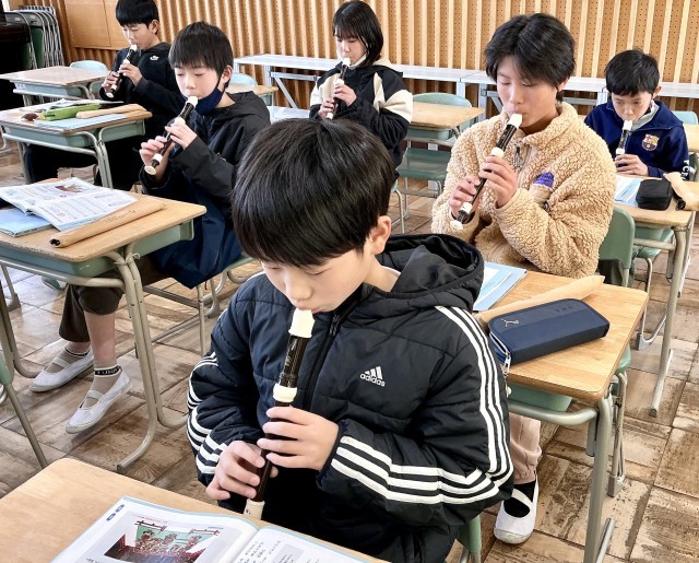 6年生 音楽科 越天楽今様をリコーダーで奏でる