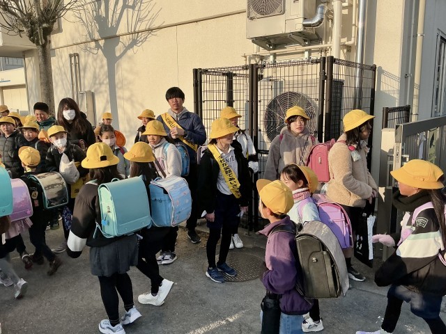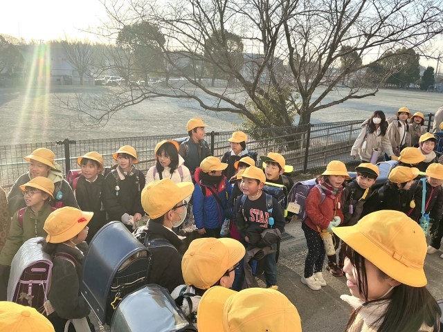 笑顔いっぱいであいさつする丈山っ子〜あいさつロード〜
